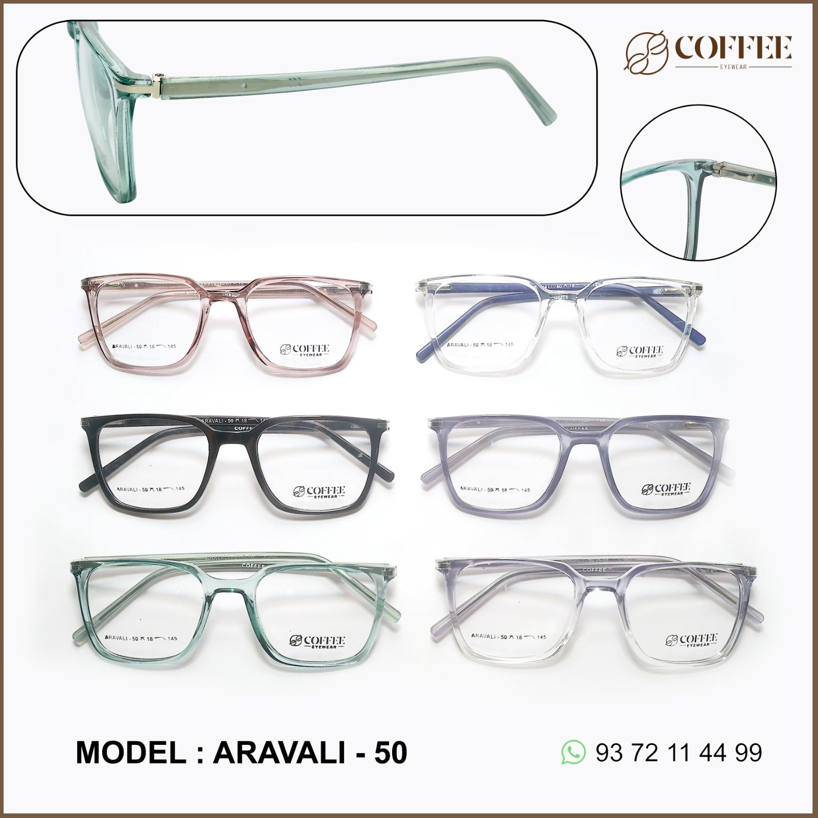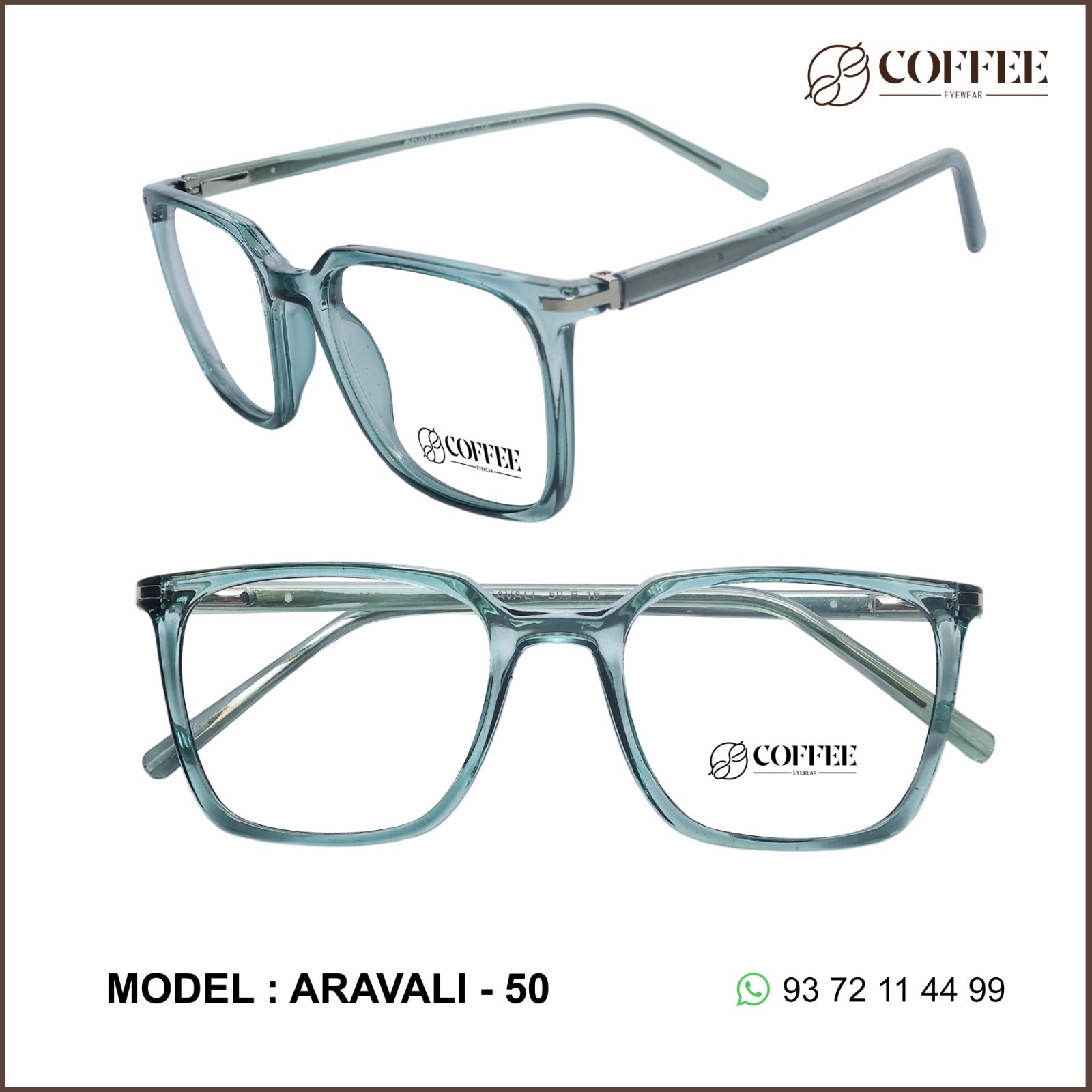 ARAVALI is a unisex rectangle frame crafted from durable and lightweight TR90 material, ideal for professionals and everyday users alike. With a contemporary shape and Coffee Eyewear branding, it fits seamlessly into fast-moving retail spaces.