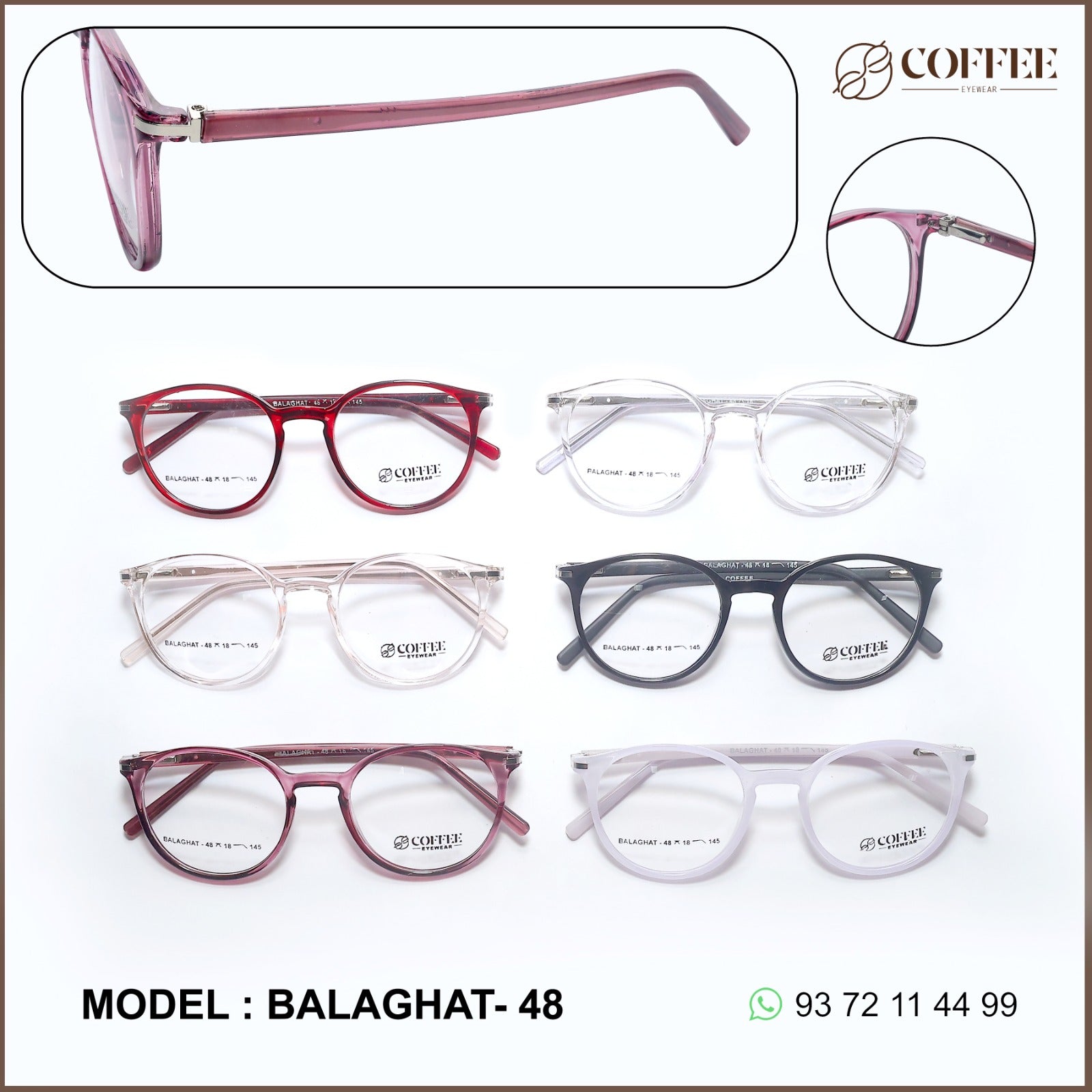 BALAGHAT is a unisex round frame made from TR90 and reinforced with a metal core wire for added durability. Lightweight and fashion-forward, it’s engineered for high-turnover retail setups and long-lasting everyday use.