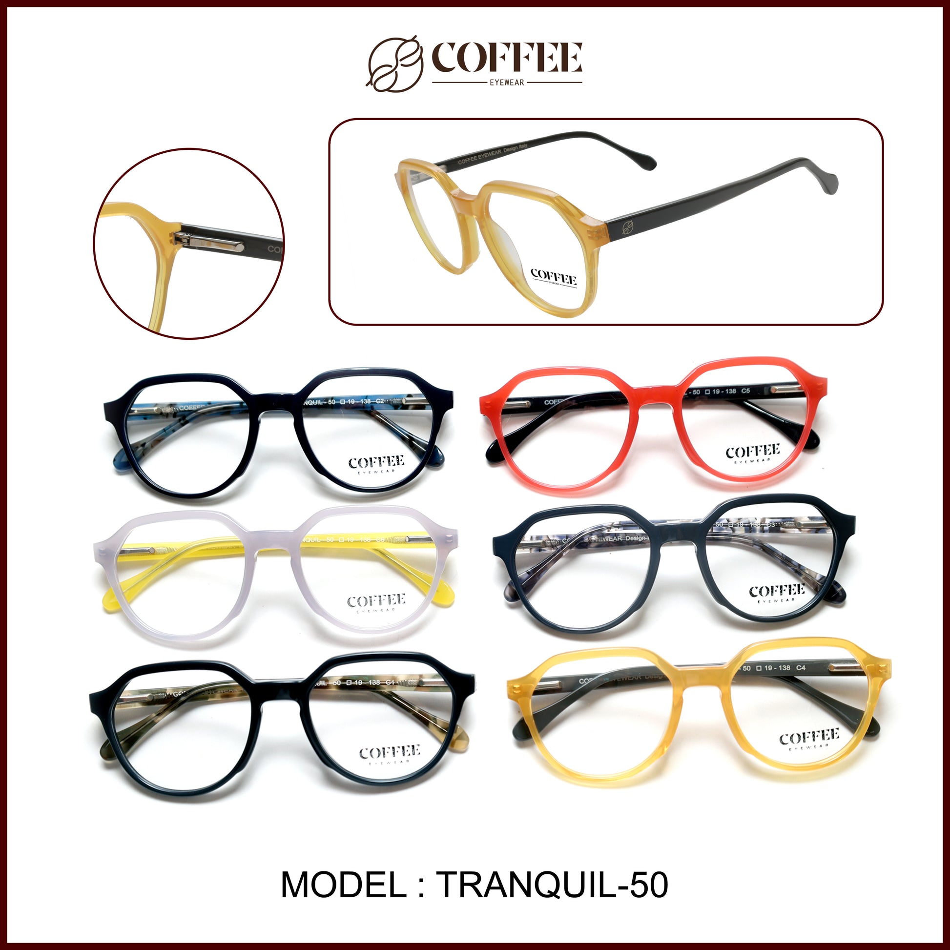 TRANQUIL is a refined round frame crafted from high-grade acetate with a premium spring mechanism for enhanced flexibility and comfort. Ideal for unisex appeal, it blends a retro silhouette with modern detailing—perfect for style-driven retail counters.